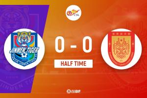 上半场补时5分钟。半场战罢,天津津门虎0-0重庆铜梁龙。