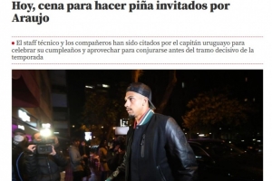 上周六,阿劳霍迎来了27岁生日。他邀请了全体队友及教练组成员,前往位于圣库加特-德尔巴列斯的Masia Rosàs餐厅聚会。此次聚餐不仅是为庆祝他的生日,也旨在西甲和欧冠冠军争夺的关键时期,进一步增强团队凝聚力。