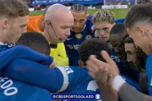 今天,裁判保罗·蒂尔尼发现自己身处切尔西球员的围圈之中。由于是纽卡开球,裁判通常会来到中线附近控制球权,以防止任何潜在的问题。然而,切尔西却也就这么决定了让主裁蒂尔尼站在他们中间,进行围圈仪式,此举也可谓是相当炸裂。