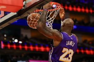GIF-詹姆斯近乎平筐的空接炸扣!