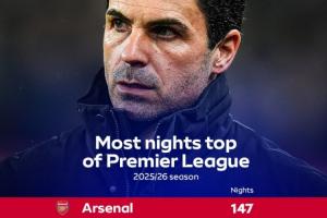 榜首还能坐多久?本赛季英超领跑天数:阿森纳147天,利物浦34天