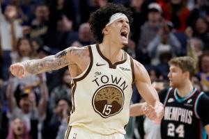 桑托斯最近1个月在勇士队的表现愈发亮眼,最近12场比赛他11场上双(其中一场9分),场均能够贡献15分5.6板3.8助1.6断,投篮命中率58.8%,三分命中率43.1%。